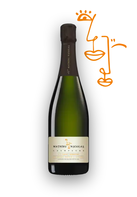 Le Champagne Mathieu Nicolas propose deux registres. Le BSA ; régulier, maîtrisé, bon rapport qualité-prix. Et nos cuvées signature ; élevages longs, nature, sans filtration. La typicité du terroir sans artifice.